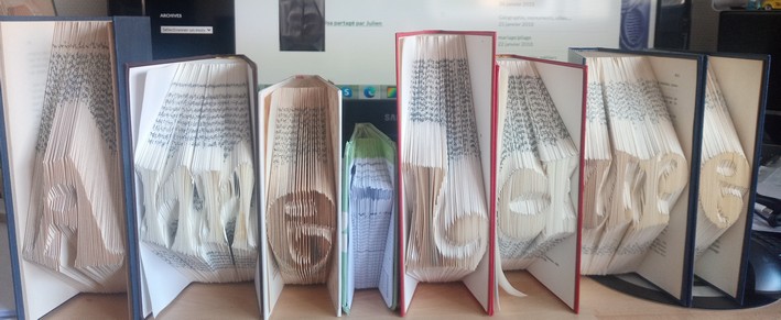 Livres pliés, Folded books, tutoriels de pliage de livres, sculpture de livres, origami, cut and fold, découp'pliage, partage et vente de patrons de pliage, tuto/écriture de mots en pliage.